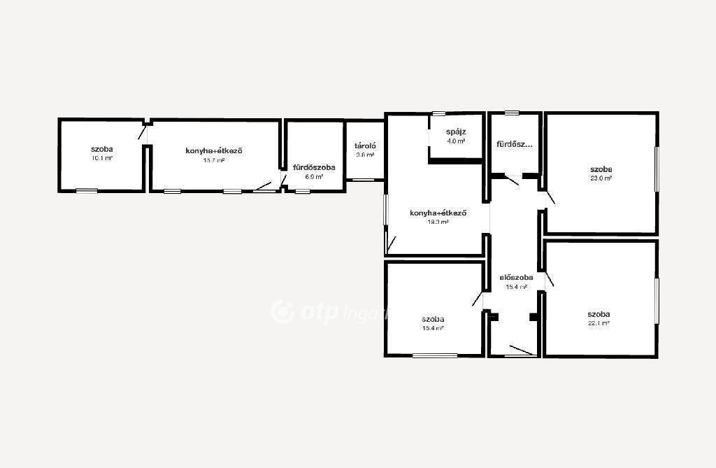 A konyha alatt található egy 12 m2-es pince, amely az udvarról nyílik.