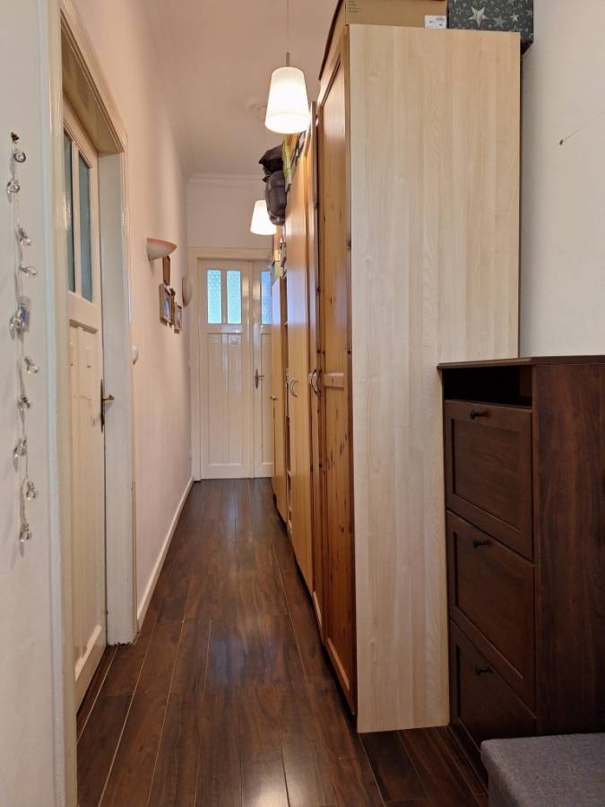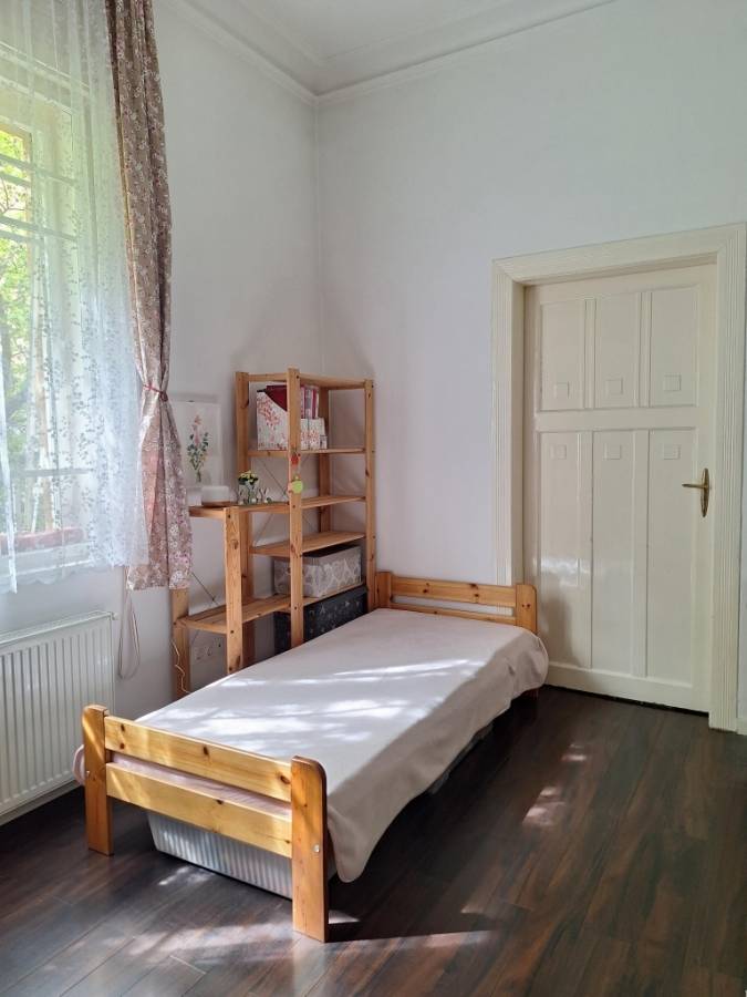 A lakás elrendezése rendkívül praktikus, három irányból kap fényt, a nagyobbik szoba pedig az utcára néz, a vastag falak és dupla nyílászárók garantálják a csendet.