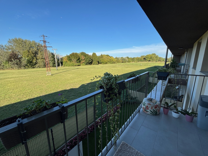 A lakáshoz tartozik egy 7 négyzetméteres terasz is, ahol a reggeli kávéját élvezheti a friss levegőn.