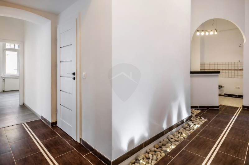 A víz, a csatorna és villany hálózat illetve a burkolatok, a nyílászárók (a belső ajtók, illetve a hang, - és hőszigetelt külső ablakok és ajtók) teljes körű cseréje megtörtént, a lakás felújítása 2 hete fejeződött be.A lakás három tágas szobával és egy félszobával rendelkezik, melyek mindegyike a minimalista kialakítás jegyében készült, így a térérzet maximálisan kihasználható.