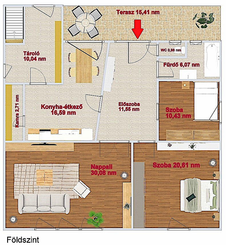A pince nettó területe 51 nm, a tetőtér pedig 68 nm, amely kellő fantáziával külön lakássá is alakítható.