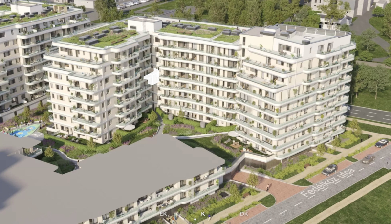 A már előrehaladott állapotban épülő, és 2026-ban átadásra kerülő Duna Terasz Vista-ban eladó egy 5. emeleti, D-i tájolású, gondozott belső kertre néző kétszobás, új építésű lakás.