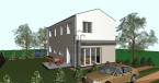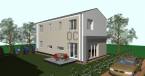 Az utcafronton elhelyezkedő önálló családi ház, hátul emeletes ikerház.