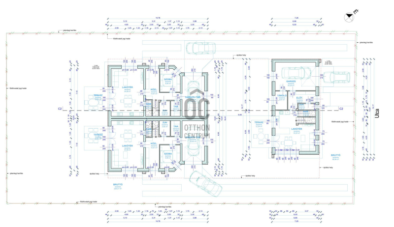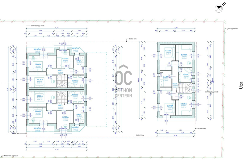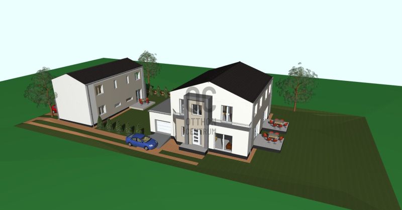 Telek területe: 1300 m2 (min. 400 m2 privát rész lakásonként)