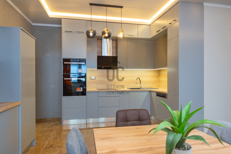 A lakás klimatizált (hűtő-fűtő klímák), az ingatlan riasztó- és kamera rendszerrel felszerelt, a konyha gépesített.