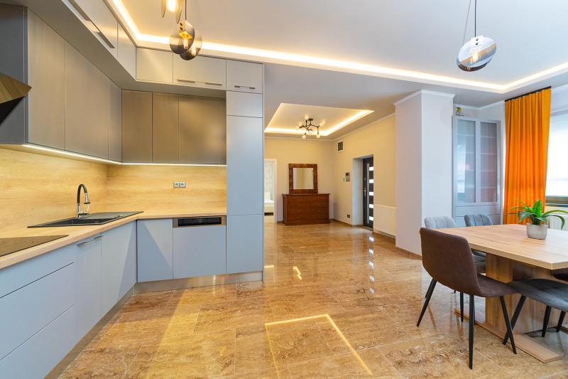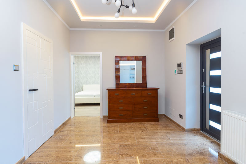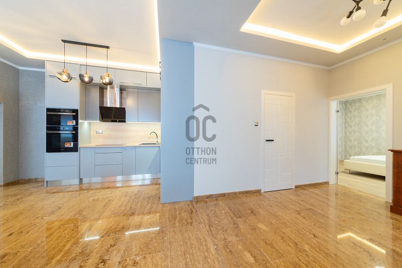 A padló- és falburkolatok magas igényszintet tükröznek, szerkezeti és esztétikai hibáktól mentesek. Álmennyezet, rejtett világítással, kialakított.
