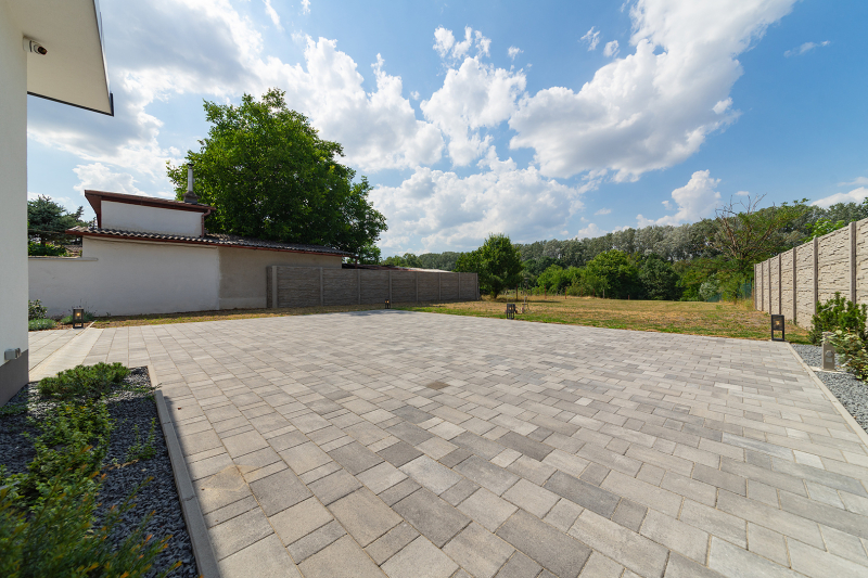 Parkolás az ingatlan előtt, valamint a telek területen, térkövezett, nyitott gépkocsi beállón több autó számára lehetséges.