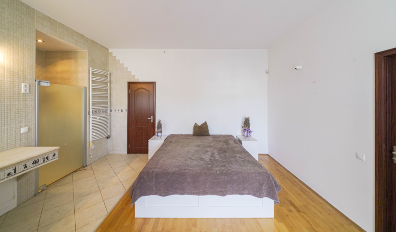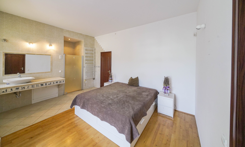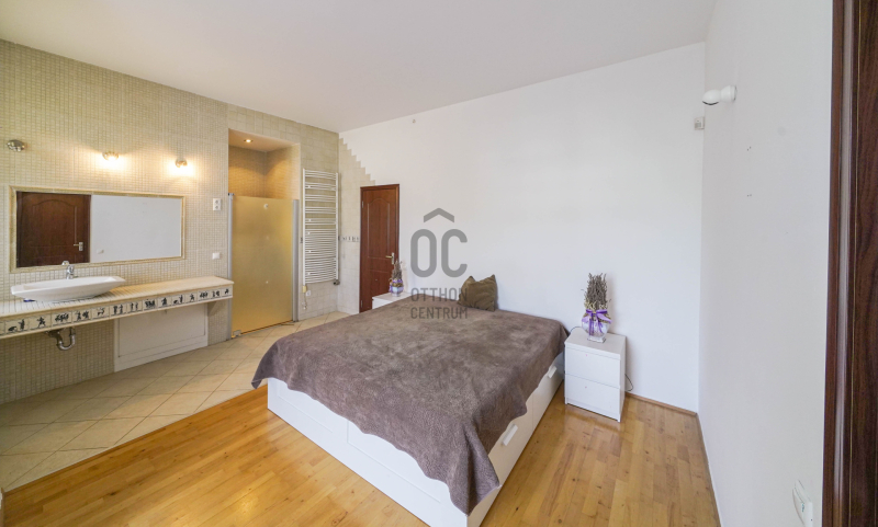 A modern nyílászárók, klíma és elektromos redőnyök tovább növelik a komfortot.