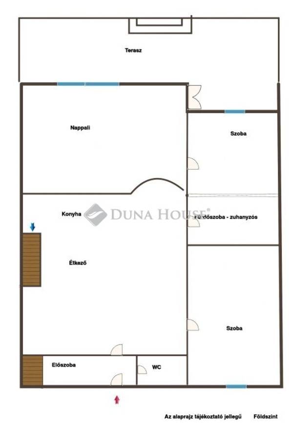 Földszinten: nappali, étkezős konyha, 2 szoba, fürdő, WC, 12 m² pince