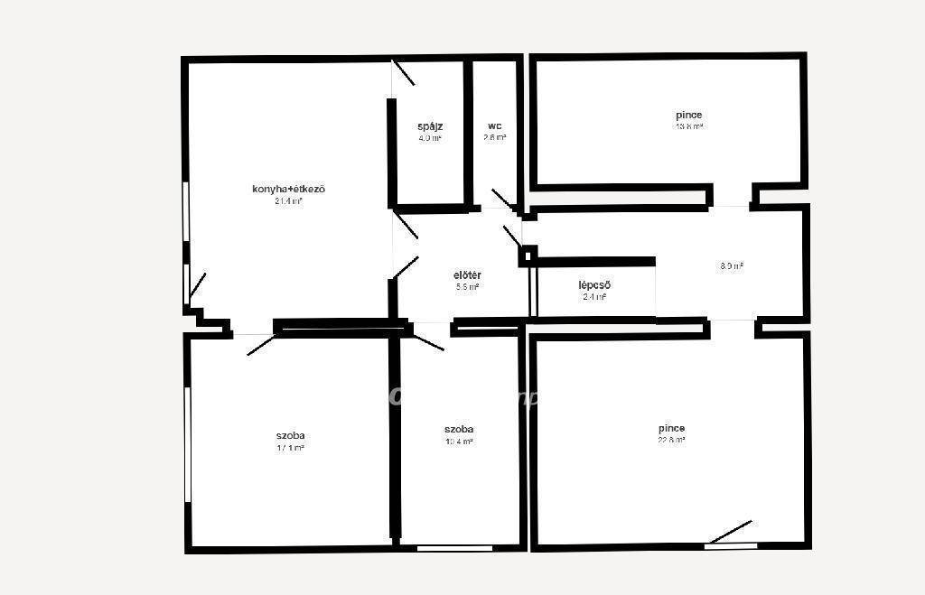 A ház félig alápincézett, szilárd beton alapra öntött, itt található egy vegyes tüzelésű kazán, valamint további tárolóhelyiségek. A házhoz tartozik egy egy állású garázs, amely az utcafrontról jól megközelíthető.
