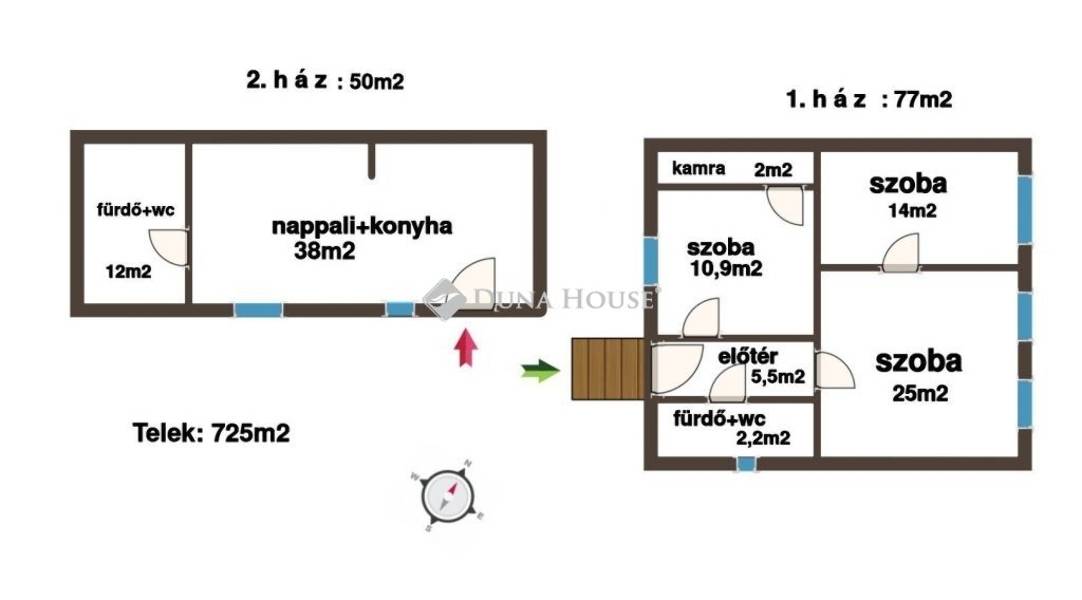 Az épületek teljes körű tatarozáson estek át! Külső dryvit szigetelést, tetőszigetelést, új tetőszerkezetet és héjazatot kaptak, víz, villany és a nyílászárók cseréje is megtörtént, új hideg/meleg burkolatok és szaniterek kerültek beépítésre. Az udvar első része és a parkoló murvás, a hátsó részt igény szerint lehet tereprendezni.1. ház: 78m2, 3 teljes értékű szoba, polgári jellegének köszönhetően rendkívül tágas, belmagassága 3,3méter. A két utcafronti szobája egymásból nyílik, harmadik a közlekedőből, ami az udvarra néz.2. ház:50m2, amerikai konyhás nappali és egy 12m-es tágas fürdő került kialakításra. A kisebb ház rendkívül tágas, a 40m2-es nappaliból akár egy fél szoba is kialakítható igény szerint.Azoknak a családosoknak ajánlom az ingatlant, akik szeretnének össze költözni. A két külön álló épület rendkívül előnyös ez által zavartalan az együtt élés és nem kell egymáson átjárni!Hitelre megvásárolható!