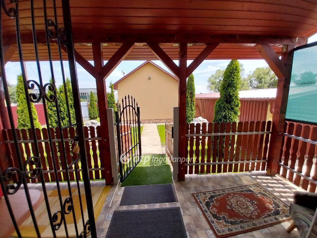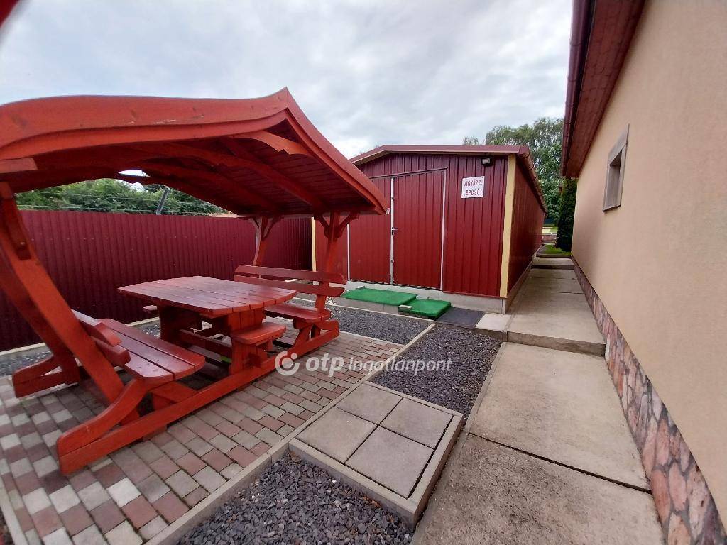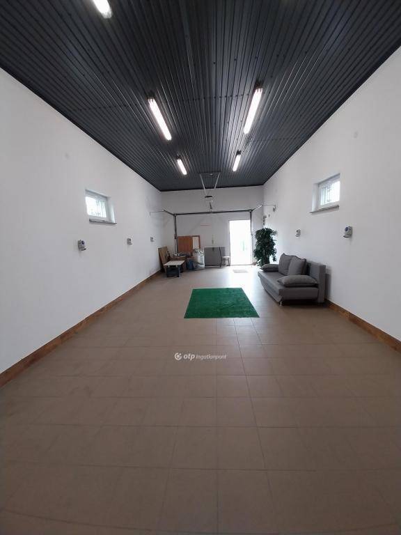 2./ Raktár, Csarnok: Méret: 4x15m. Borítás: Anti kondenzációs, páramentes trapézlemezzel. Járófelület: Kiváló állapotú padlószőnyeg borítású. 3./ Iroda helyiség: Méret: 8x5m. Helyiségek: Fedett terasz, iroda, WC-zuhanyzó-kézmosó. Falazat: Korszerű, 30 cm vastag Porotherm HS falazóblokkból készült, szigetelt. Nyílászárók: Műanyag hőszigetelt. Burkolat: Laminált padló, csempe járólappal Fűtés: Elektromos fűtőtest. Lakhatási célra is alkalmas az építmény!
