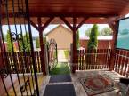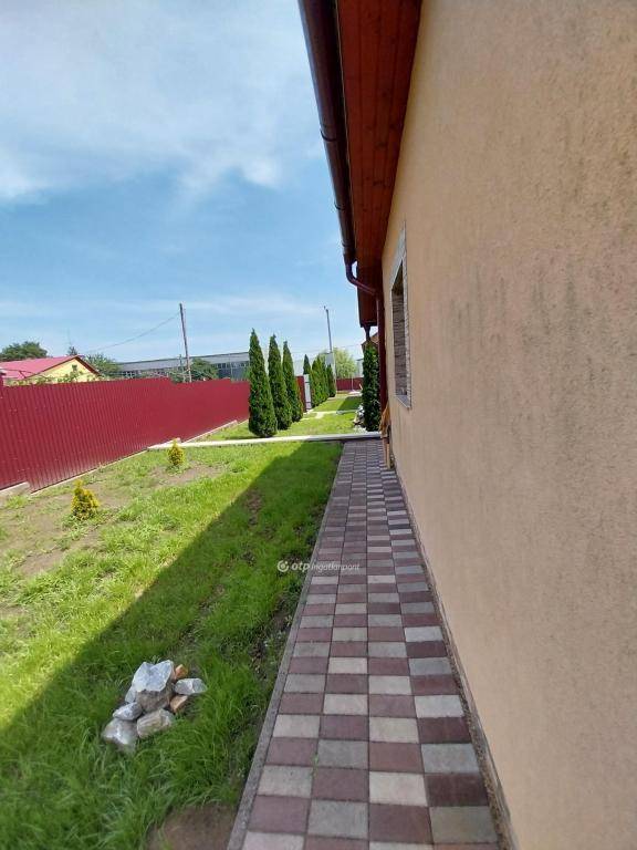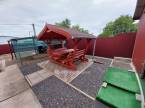 Az udvar igényesen megtervezett, elektromos kapuval ellátott, térkövezett , füvesített, díszcserjével beültetett, fúrt kúttal ellátott.