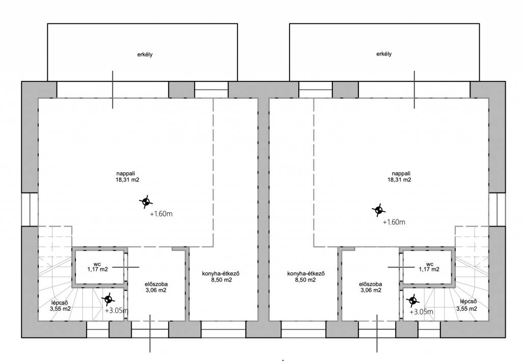 Elosztása: amerikai konyhás nappali plusz három hálószoba, fürdőszoba WC-vel, külön WC, előszoba.