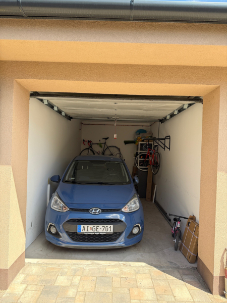 - Kizárólag garázzsal kapcsolatos ikerház, szolgalmi úttal kialakított közös bejáró