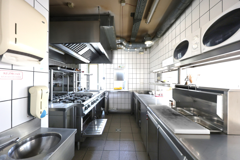 Hatalmas konyhai részleggel rendelzeik, melyben minőségi gépesítés található, ezen felül természetesen a vendégek és a dolgozók számára is ki lett alakítva mosdó.