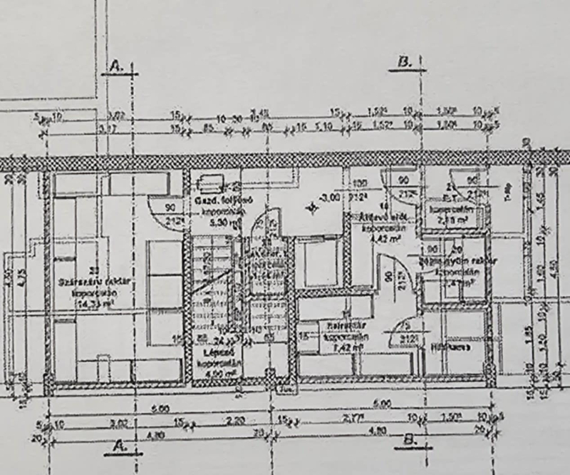 A pince szint 42 nm ahol tárolók, raktárak helyzkednek el, innen lehet megközelíteni a teremgarázs beállót is.