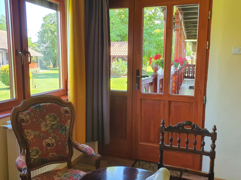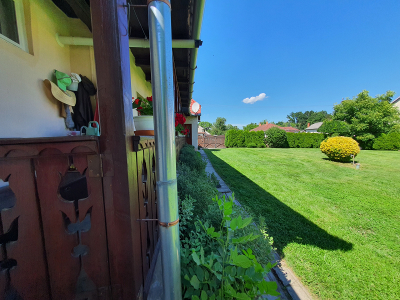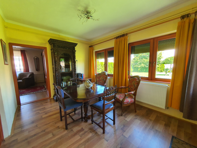 - A Fő épület a 1962 években épült, falazata vályog és tégla, tetőrendszere Lindab lemezzel fedett, nyílászárói hőszigetelt fa nyílászárók, kivéve a konyha és a fürdőszoba, melyben már Műanyagból készült hőszigetelt nyílászárókra cseréltek.. A teljes épületben új Gáz cirkó fűtésrendszer alakítottak ki, mely a meleg vizet is biztosítja. Új zuhanyzós fürdőszoba is rendelkezésre áll, melyben a teljes vízvezeték rendszer is cserélve lett, mindez 2018-ban. A belső elrendezésében 3 szoba található, melyben gyönyörű Francia kézműves fa alapú bútorokkal lett berendezve, melyeket tulajdonosai korszerűen restauráltattak, így minősége még sok-sok évtizedik is kiváló lesz. Napfényes, világos és minden oldalról egy gyönyörű park veszi körbe, ahová megint egy stílusához illő teraszon keresztül jutunk. Ebben ez épületben egybejárhatóan, egy korszerű új beépített konyhabútorral, teljes gépészettel felszerel konyha - étkező is található, ahonnan megközelíthető a teljesen új és ízléses fürdőszoba, valamint egy kisebb kamra is. A főépület vonalában még egy nappali vagy dolgozószoba is kialakításra került, melyet jelenleg könyvtárként használnak tulajdonosai, de méretéből adódóan más funkciót is elláthat, például vendégszoba gyanánt, mivel két kihúzható rekaméval rendelkezik. Ennek az épületnek egy része alatt található pince is, mely tárolásra, hűtésre kiválóan alkalmas.