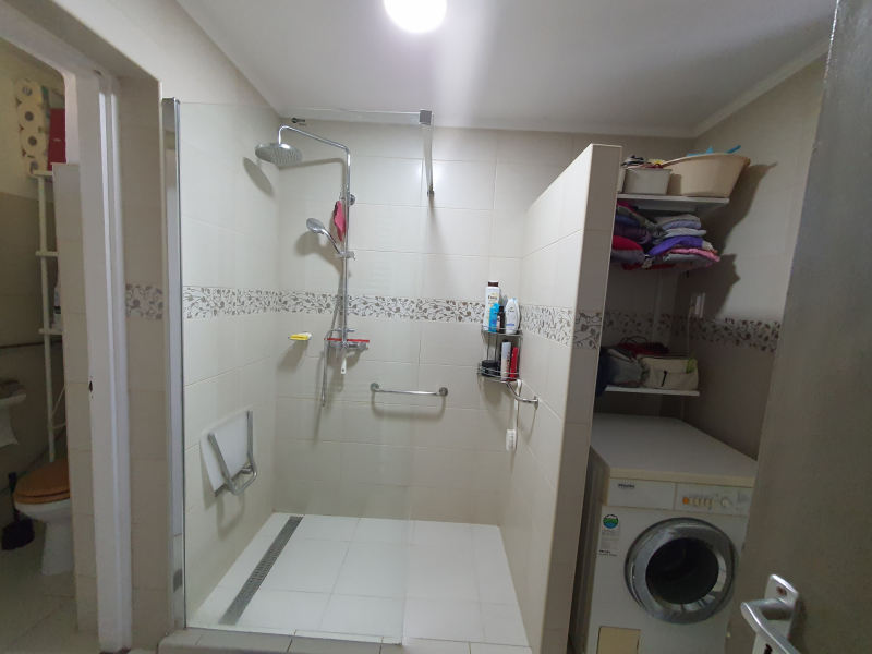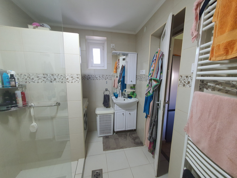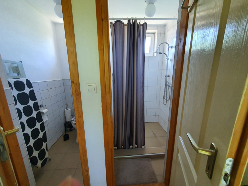 Mivel nagy a birtok, a konyha mellett kialakult a második fürdőszoba+ wc is, a könnyebb megközelíthetőség és munka utáni felfrissülés szempontjából igen hasznos, s melyet a fedett terasszal tettek védetté.