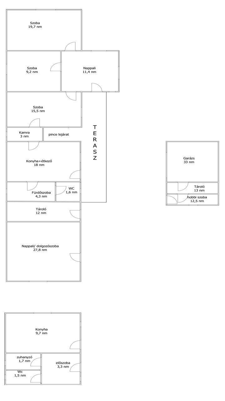 - A harmadik épületben található a garázs, mely 2 autó számára is helyet biztosít, mindez 33 nm-en, valamint van hozzá tartozó tároló is. Itt kialakításra került még egy hobbi szoba, ami + egy kis kedvenc lesz leendő tulajdonosának, ami a baráti összejövetelek talán, legjobban kihasznált helysége a \\\"pálinkárium\\\" !! Ez az épület 2012-ben újult meg, falazata tégla, tetőrendszere zsindellyel fedett és ez az épület is előtetővel védett.