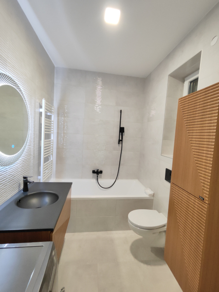 Minden helyiségben hőszivattyús hűtés-fűtés rendszer került kialakításra, külön hőfokszabályzással, 6 KW-os napelem rendszert is kapott az ingatlan szaldós elszámolással.