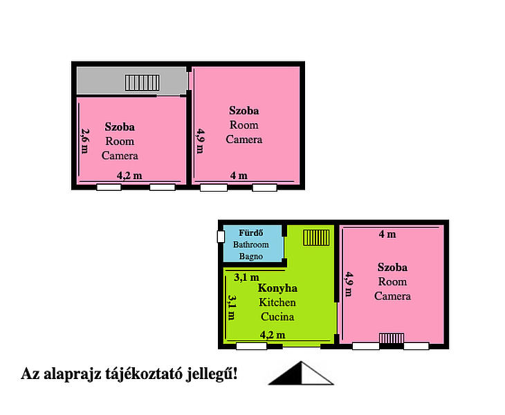 Tulajdoni lap szerint 40 m2-es a lakás, viszont a 4,2 m-es belmagasságot kihasználva, egy felső szint lett kialakítva, így a felhasználható hasznos terület 75 m2, ügyvédi használati megosztási szerződéssel rendelkező ingatlan.