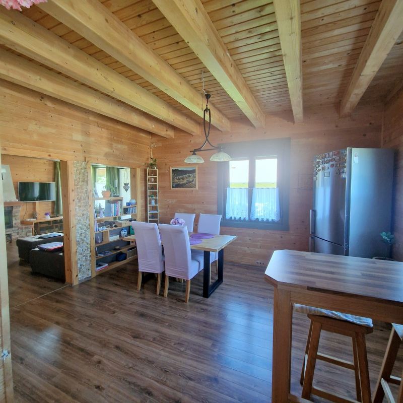 A házban télen a meleget infrafűtés biztosítja, de a nappaliban egy fa tüzelésű kandalló is található.