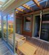 A tágas nappaliból lehet kimenni a fedett teraszra, ami egyetlen mozdulattal téliesíthető. Ide egy ajtón át is be lehet jönni az udvarról, és ha van házi kedvenc, akkor ő is tudja használni a rajta lévő kutya ajtót.