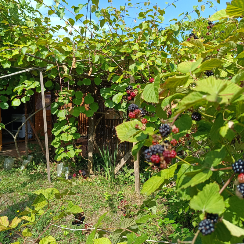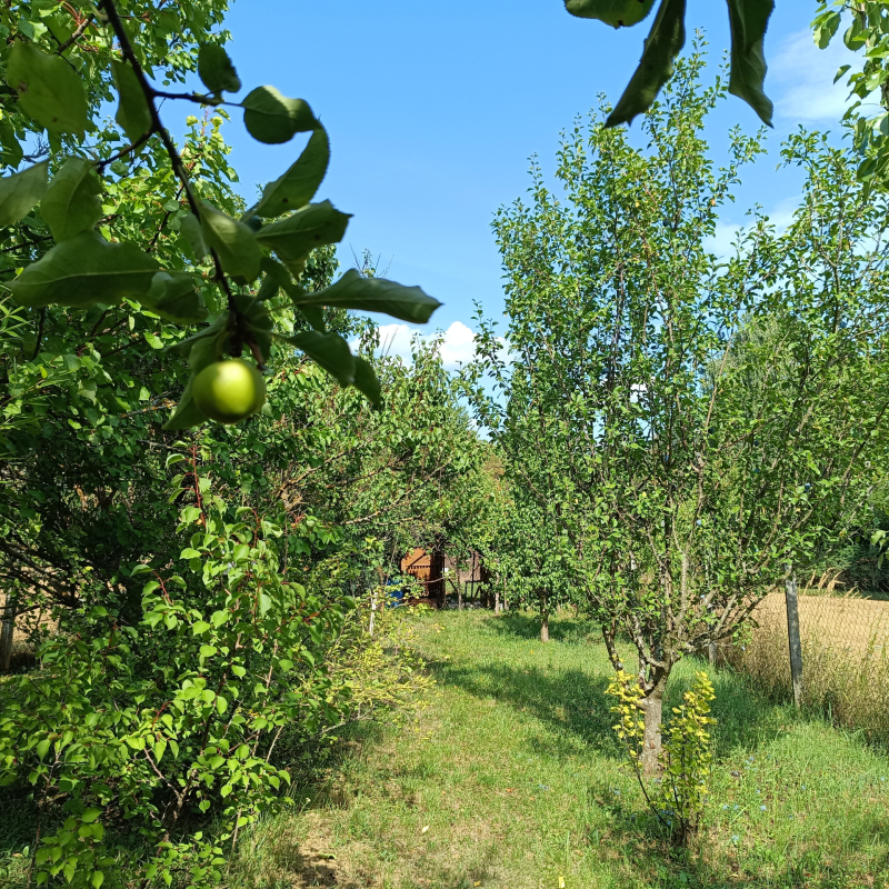 A kert tele van gyümölcsfákkal, melyek éppen érnek pl: szilva, barack, meggy, cseresznye, alma, körte, dió, füge, kivi, josta, szeder