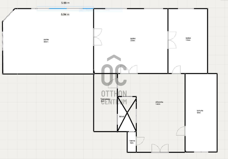 A lakás egyedi beosztásának köszönhetően könnyen kialakítható benne akár amerikai konyhás nappali + 3 hálós elrendezés is!