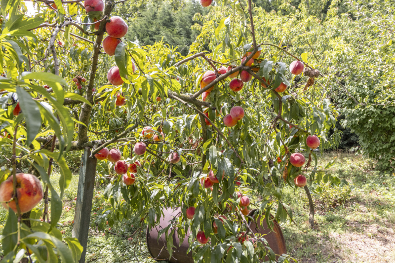 A kertben rengeteg gyümölcs terem, többek között mézédes őszibarack, alma, körte, ribizli és szőlő.