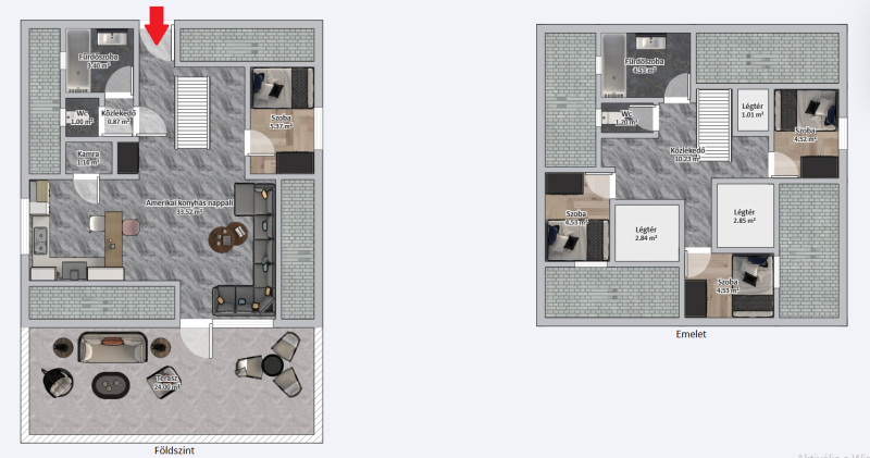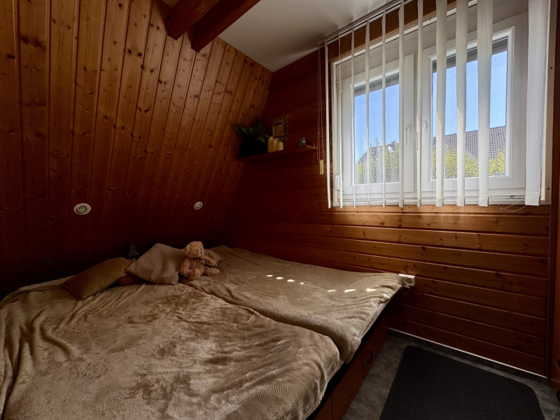 - Alsó szinten műanyag, míg a felső szinten fa nyílászárókkal ellátott.