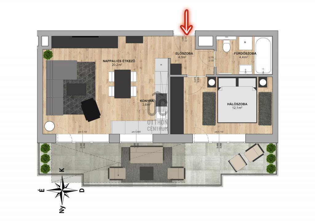 - 4. emeleti, nettó 45,47 m²-es, 2 szobás, nyugati fekvésű modern ingatlan.