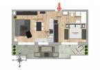 - Elosztása kényelmes: előtér, tágas amerikai konyhás nappali és étkező, hálószoba, fürdőszoba WC-vel.