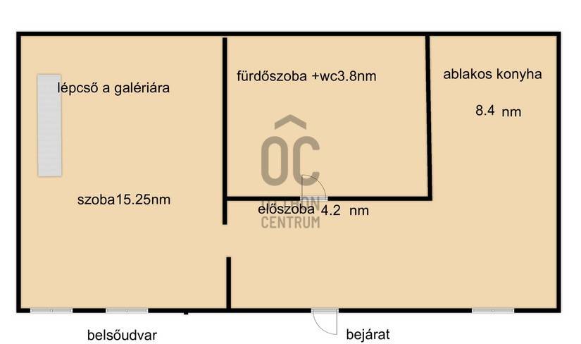 A lakás alapterülete a teljes galériának köszönhetően megduplázásra került.