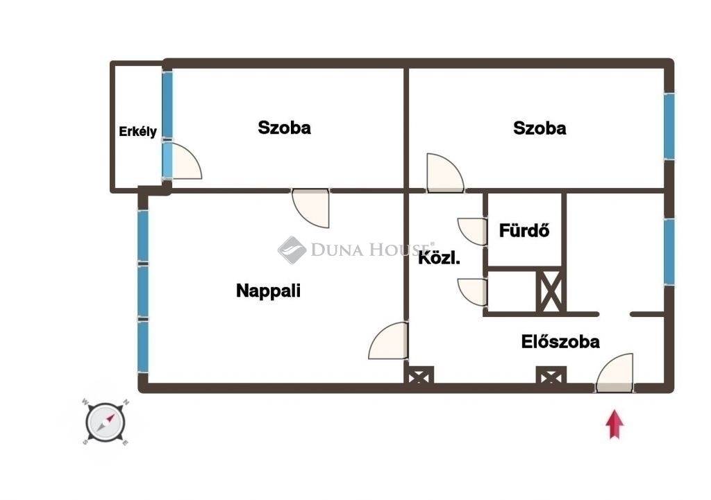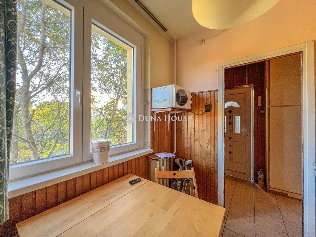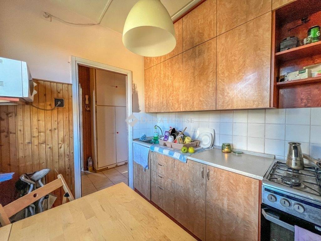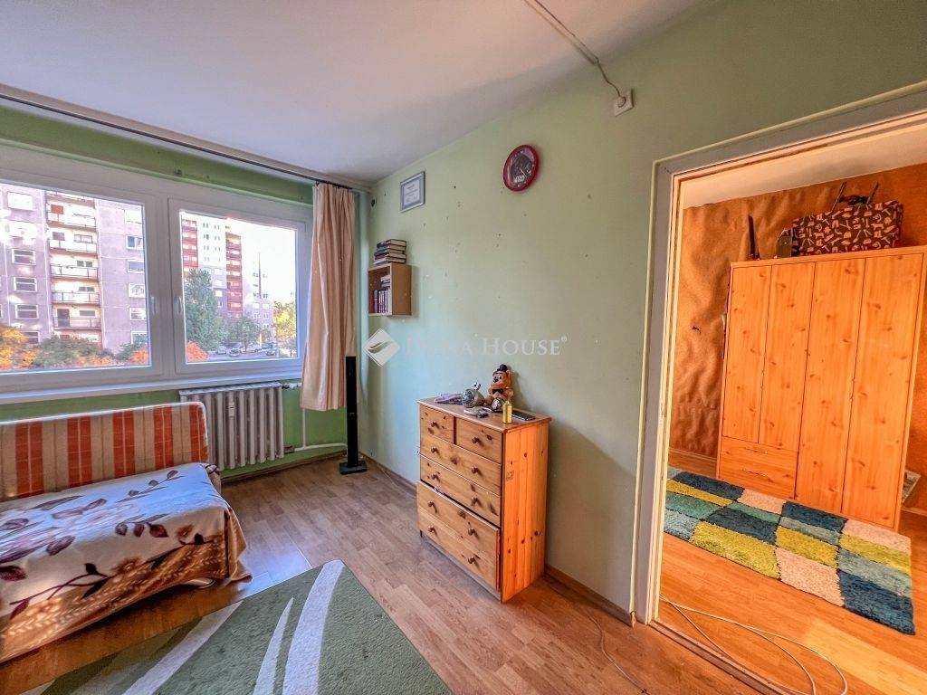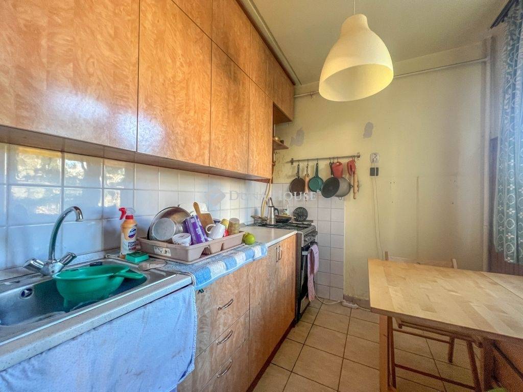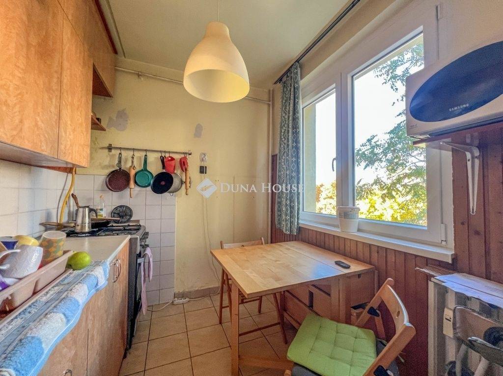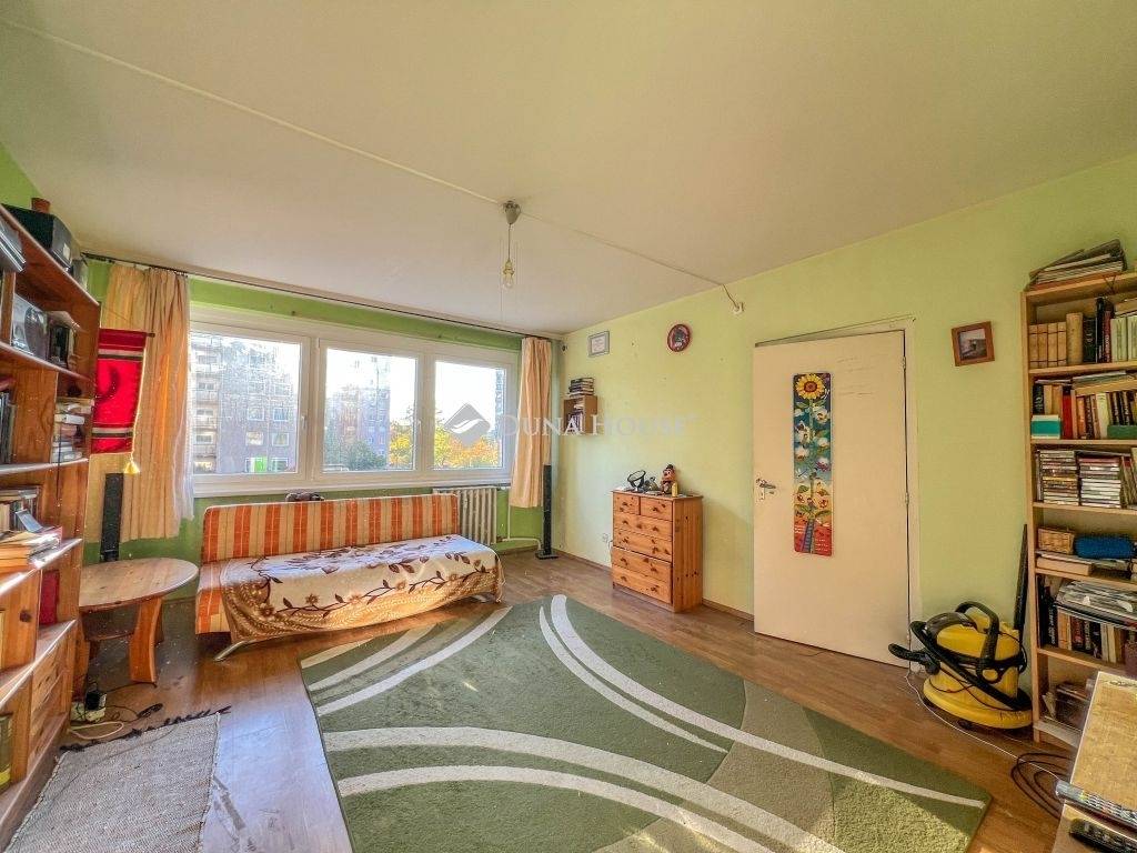 Az ingatlan elosztása kiváló, áll egy előszobából, étkezős konyhából, közlekedőből, 3 szobából, erkélyből valamint külön fürdőből és WC-ből, az állapota alapvetően felújítandó, azonban a lakás nyílászáróit már kicserélték. Az ingatlan a szomszéd lakással közös loggiáról nyílik, fűtésről és a meleg víz ellátásról távhő gondoskodik. A lakás DNY-i fekvése miatt bent egész nap jók a fényviszonyok, az erkély a házak közötti játszótérre néz.