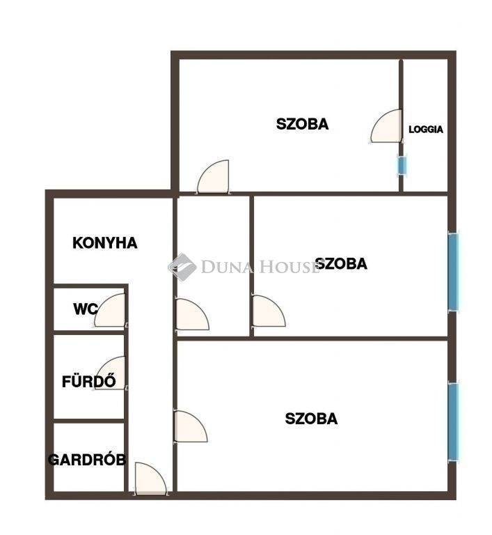 71 m²-es, három különnyíló szobás lakást egy rendezett, tízemeletes társasház első emeletén.