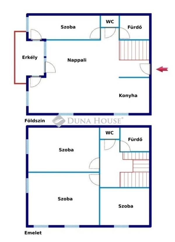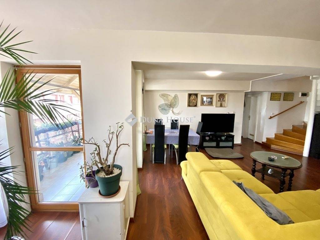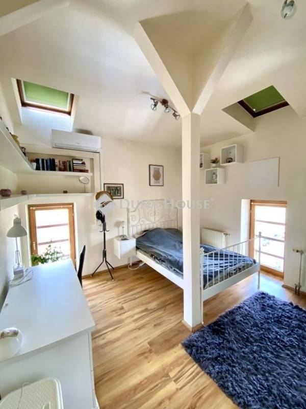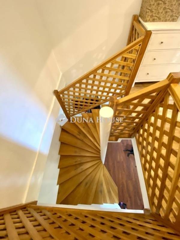 A lakást, a zárt lépcsőházból közelíthetjük meg. A 3. emeleten található az amerikai-konyhás nappali, egy jelenleg dolgozóként funkcionáló szoba, az erkély, valamint a fürdő és külön helyiségben a WC. Az emeleten 3 külön-bejáratú szoba, zuhanyzós fürdő és a WC érhető el. A lakás 2024-ben volt frissen festve. Az ablakok hőszigetelő üvegezésű fa szerkezetek. A szobák aljzata laminált parkettával borított az egyéb helyiségek kerámia lappal burkoltak. A konyhabútor gépészettel a vételár részét képezi.