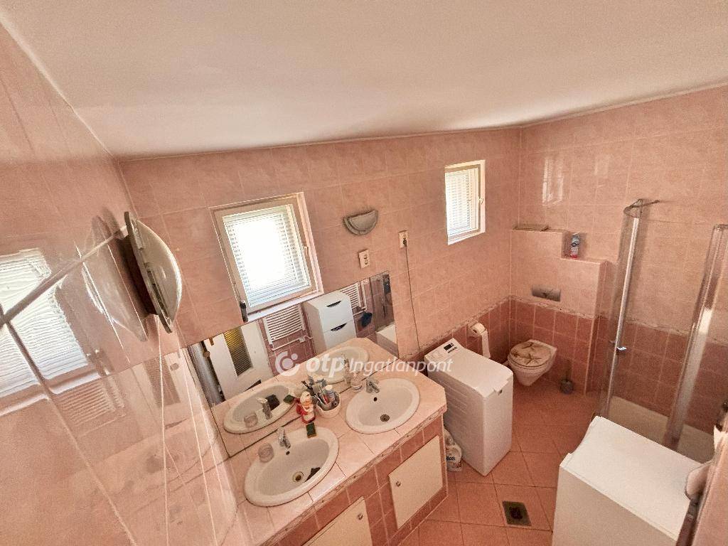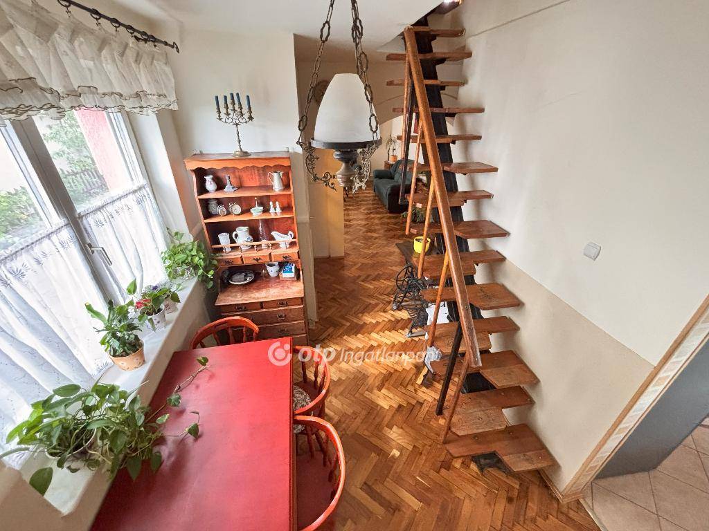 Az emeleten két külön nyíló szoba és egy második, szintén zuhanyzós fürdőszoba kapott helyet. Az emeleti erkély kellemes kitekintést nyújt a kertre. A ház szerkezete kiváló, az alap is több rétegben szigetelt, a homlokzat hőszigetelt, a tetőt Bramac cserép fedi, szigeteléssel alatta. Az ingatlan korszerű műanyag nyílászárókkal rendelkezik. A fűtést a leggazdaságosabb kondenzációs kazán biztosítja. 380 V ipari áram is bevezetésre került, nagyobb teljesítményű gépekhez vagy bővítési tervekhez ideális lehetőség. A telek 461 nm, jól kezelhető méretű kerttel. Az utca csendes, a belváros könnyen elérhető, akár autóval, akár biciklivel vagy gyalogosan.