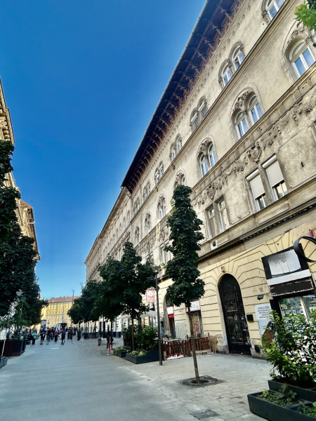 Két metróvonal (M2, M4), buszok, trolik minden irányba, a legjobb kávézók, éttermek, bulik a közelben.