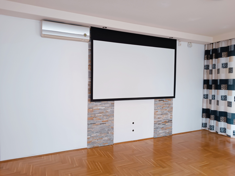 - nappaliban házimozi rendszerhez vászon és projektortartó szerkezet kiépítve