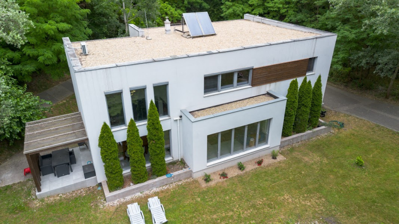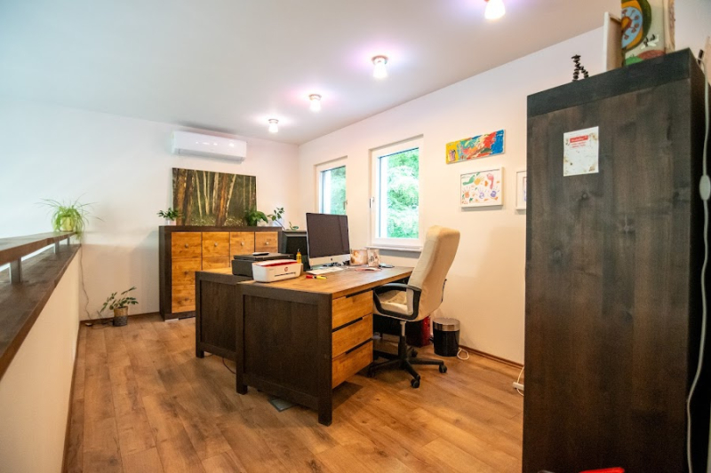 - környezetbarát, fűtése padlófűtés, és fatüzelésű kazán van, illetve napelem a ház tetején!