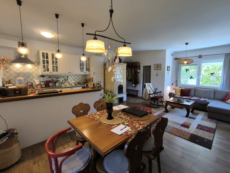 -A nappali világos és barátságos, a beépített bútorok és szekrények pedig nemcsak praktikusak, hanem esztétikai szempontból is emelik az otthon hangulatát.