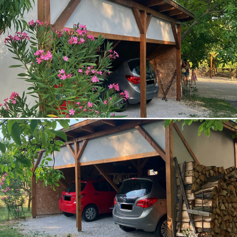 -Az ingatlanhoz tartozik két garázs férőhely, amely kényelmes parkolást biztosít. Ezen kívül egy jól felszerelt boltíves tégla építésű borospince is ár részét képzi.