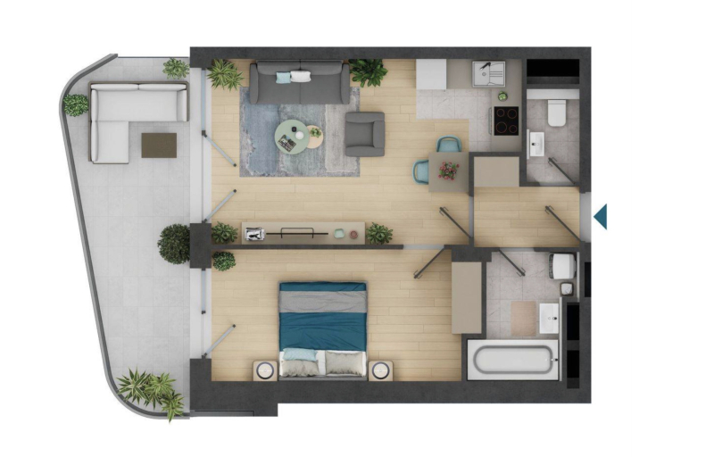 A már előrehaladott állapotban épülő, és 2026-ban átadásra kerülő Duna Terasz Vista-ban eladó egy 4. emeleti, 44 nm alapterületű + 15 nm DNY-i fekvésű terasszal rendelkező, belső kertre néző kétszobás új építésű lakás. A lakáshoz teremgarázs hely és tároló vásárlása opcionális.