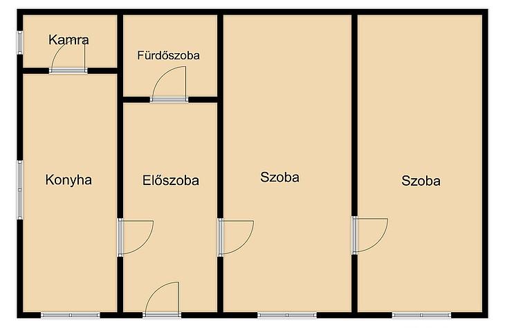 Az ingatlan jelenlegi elrendezése kettő egymásból nyíló szobát, konyhát és fürdőszobát tartalmaz.