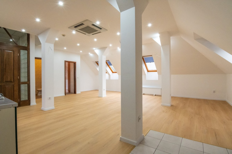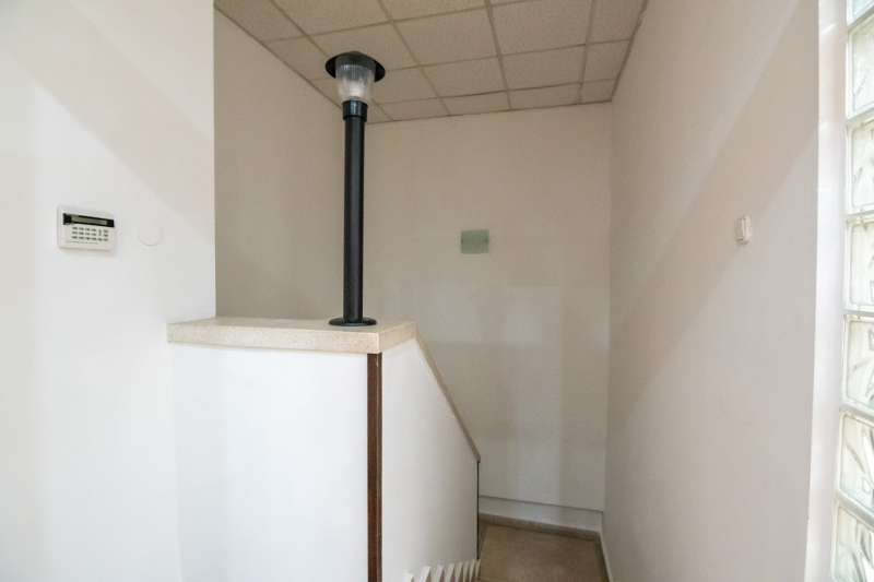 Zárt lépcsőházból érhető el, önálló riasztó rendszerrel védett.
