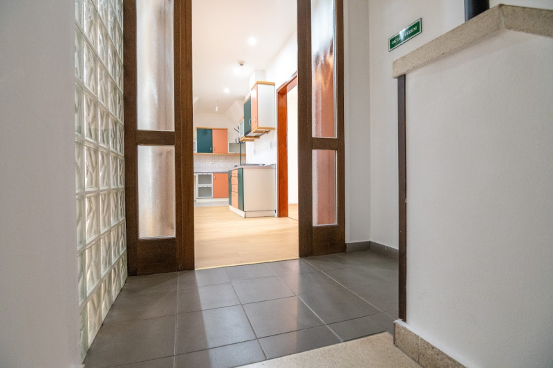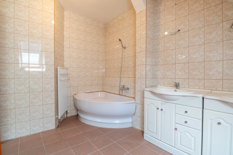 A konyha, a tágas fürdő és mosdó járólappal fedett, a szobákban és a közösségi térben új laminált burkolat található.