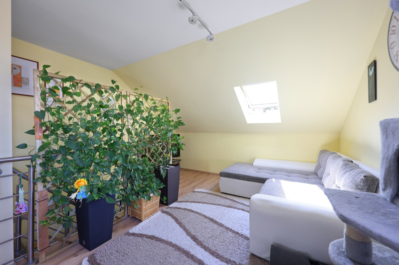 A kétszer 15 négyzetméteres terasz pedig ideális a nyári estéken való pihenéshez, ahol a gyönyörű kertet élvezheted.
