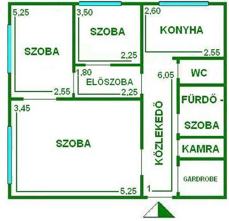 A lakás praktikus elosztású: külön nyíló szobák, nagy ablakos konyha, külön fürdő és WC, valamint két tárolóhelyiség a lakáson belül – egy gardrób és egy spejz –, továbbá két saját tároló is tartozik hozzá a ház közös helyiségeiben - egyik a pinceszinten, másik pedig a lakószinten található.